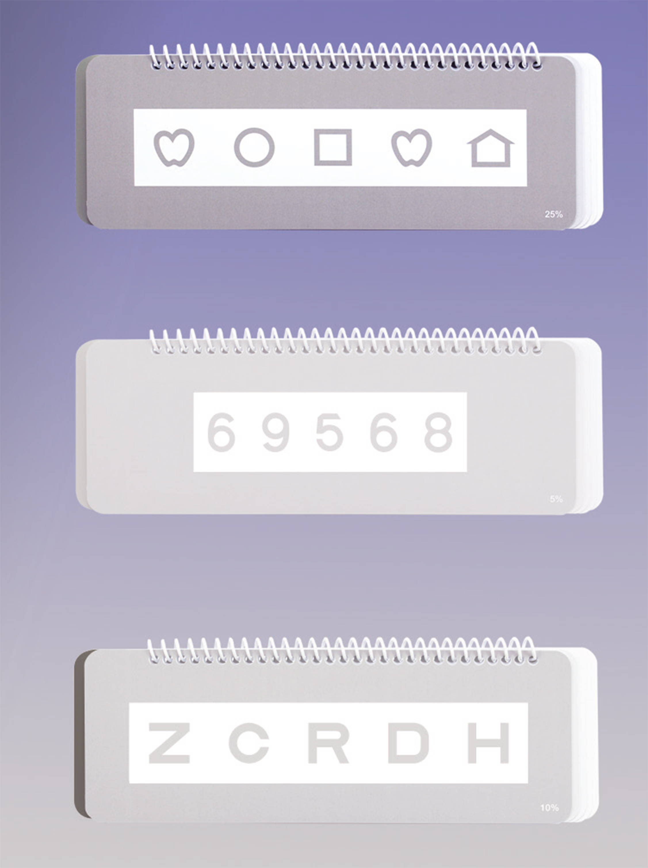 A low contrast flip chart is an easy way to measure, record, and detect changes in the transfer of visual information when the change affects only visual acuity at low contrast levels. Chart presents LEA SYMBOLS®, LEA NUMBERS®, and Sloan Letters at the following contrast levels: black, 25%, 10%, 5%, 2.5%, and 1.25%. Pages are offset for easy flipping. LEA SYMBOLS® contrast flip charts include response key. All flip charts include recording forms and instructions. 6 pages, 3.25" x 9" (8.25 cm x 22.9 cm).