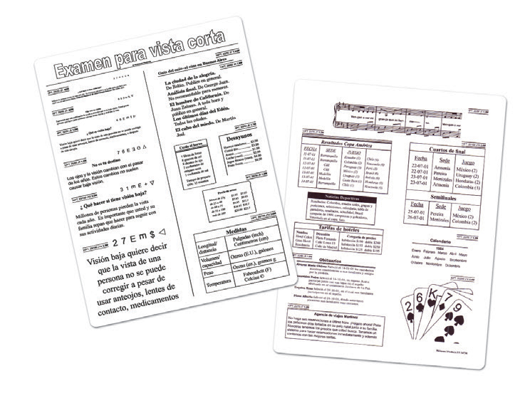 includes reading examples for acuity levels