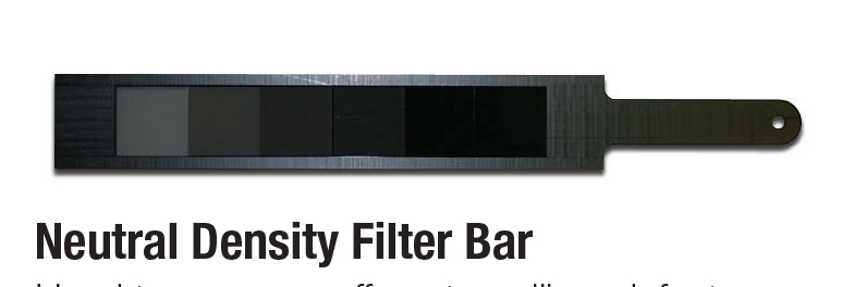 Used to measure afferent pupillary defects (APD) also called “diminished pupil reaction to light levels”. Provides the filter values: 0.3, 0.6, 0.9, 1.2, 1.5, and 1.8 density log units.