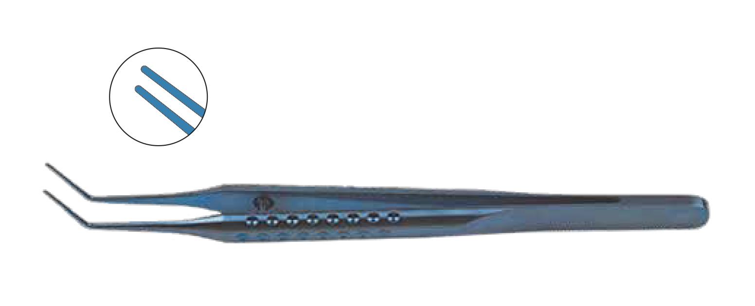 Loading forceps for foldable lenses into the cartridge, 11 mm angle to tip, cylindrical arms