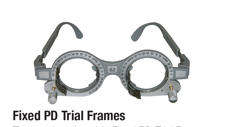 The fixed trial frames come in the following PD sizes of 52, 54, 56, 58, 60, 62, 64, 66, 68, and 70 mm and each will hold 4 lenses.
